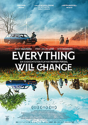 "EVERYTHING WILL CHANGE erzählt vom abenteuerlichen Road-Trip dreier Freunde, BEN, FINI und CHERRY, die im Jahr 2054 eine sterile, betonierte Welt bewohnen. Als sie erfahren, dass ihr Planet einst von reicher, bunter Schönheit geprägt war, machen sie sich auf eine Reise, um Antworten auf ihre immer größer werdenden Fragen zu suchen: "Was ist Giraffe? Und warum sind die Tiere verschwunden, die es mal gab?" In einem geheimnisvollen Schloss treffen die Freunde auf alternde Wissenschaftler*innen und weise Poeten, die Daten und Erinnerungen zum 6. Artensterben in ihrem Archiv sammeln. Die Suche führt in die 2020er Jahre - der letzten, verpassten Chance des Planeten. Die Drei sind fassungslos und hecken einen mutigen Plan aus. Doch ihr Versuch, die Menschheit wach zu rütteln und das Geschehene ungeschehen zu machen, scheitert kläglich. Enttäuscht erkennen sie, dass es in ihrer Welt nichts mehr zu retten gibt. Schließlich folgen sie den rätselhaften Spuren, die ihnen ein uralter Antiquitätenhändler gegeben hatte. So fassen die Freunde einen letzten, waghalsigen Entschluss, der alles ändern wird." (Text: farbfilm verleih GmbH)
