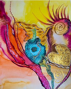 Malen um der Freude willen - ohne Erwartungen oder Vorstellungen und frei von dem Anspruch ein bestimmtes Produkt des Verstandes zu Papier zu bringen, sondern dem Gefühl und der Intuition folgend! Im Vordergrund stehen der spontane und kreative Ausdruck und die Freude am Malen. Hier entstehen ganz eigene Herzens- und Seelenbilder.