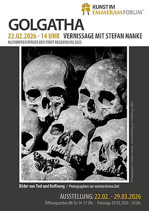 Wir freuen uns, am ersten Fastensonntag die erste Kunstausstellung im EmmeramForum zu eröffnen. Unter demTitel Golgatha - Bilder von Tod und Hoffnung , Photographien zur vorösterlichen Zeit - präsentiert Stefan Hanke, Kulturpreisträger der Stadt Regensburg 2025, seine Werke.